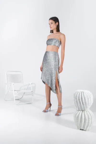 PUSSYCAT DOLLS MIDI SKIRT SILVER