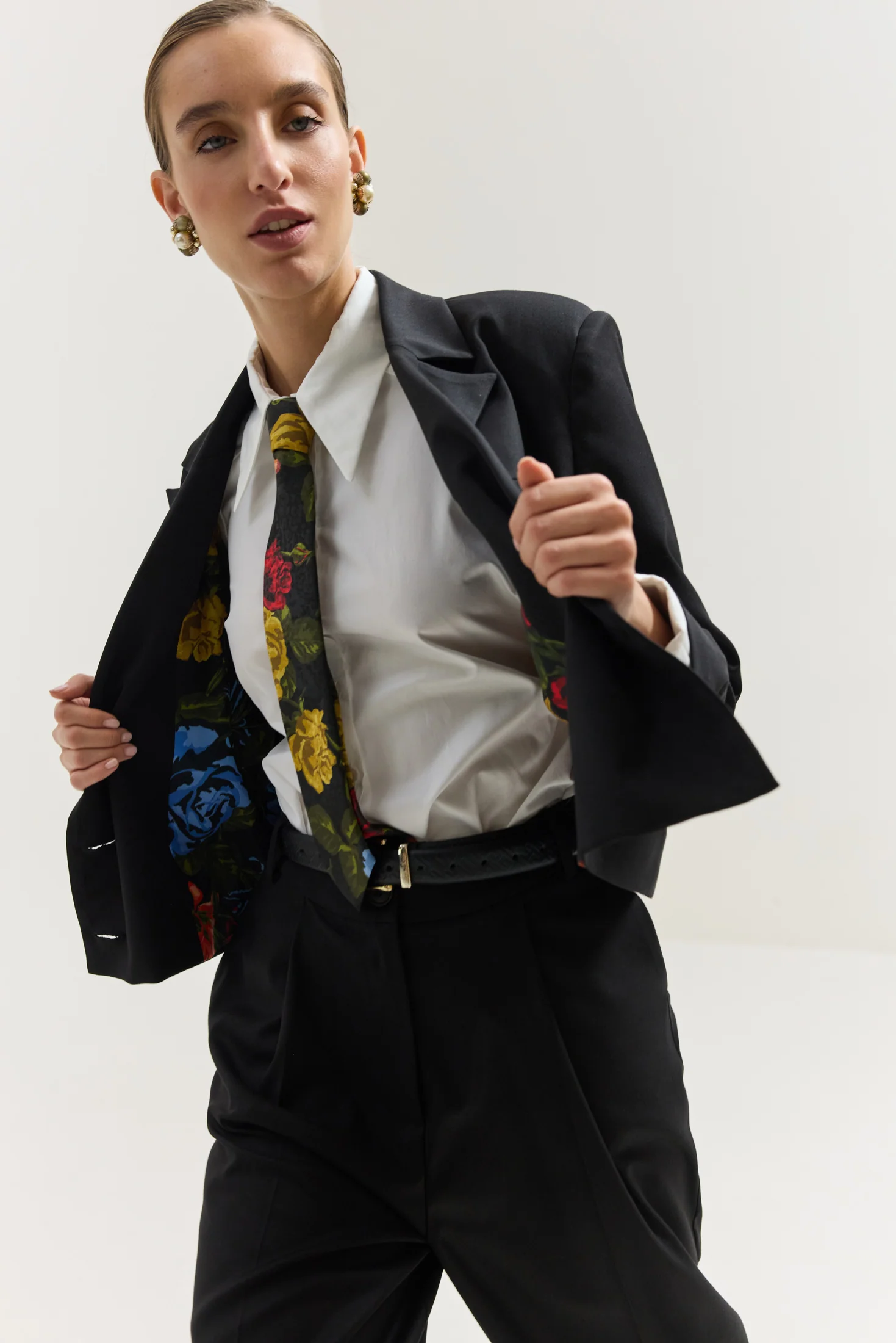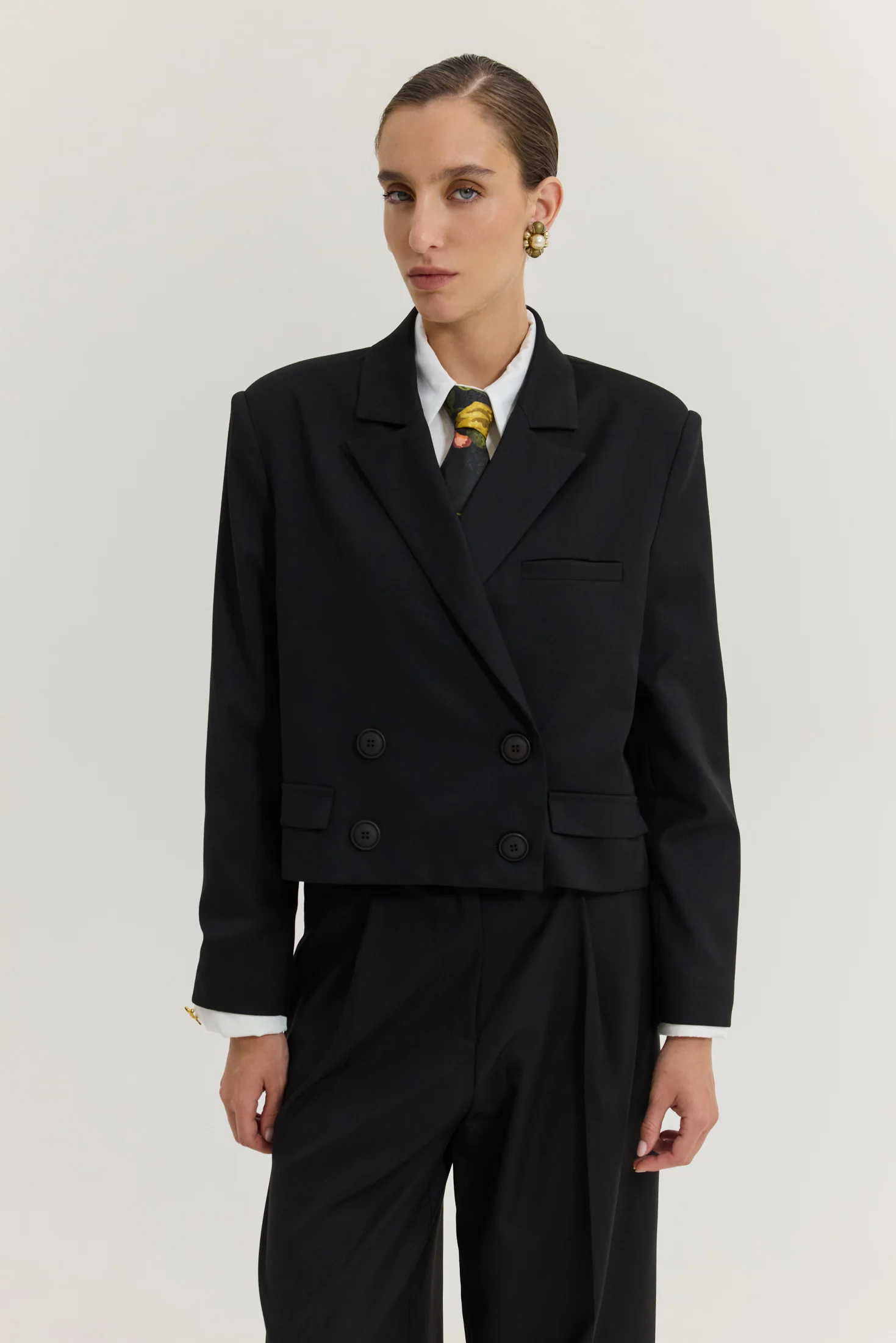 - Cropped black blazer
