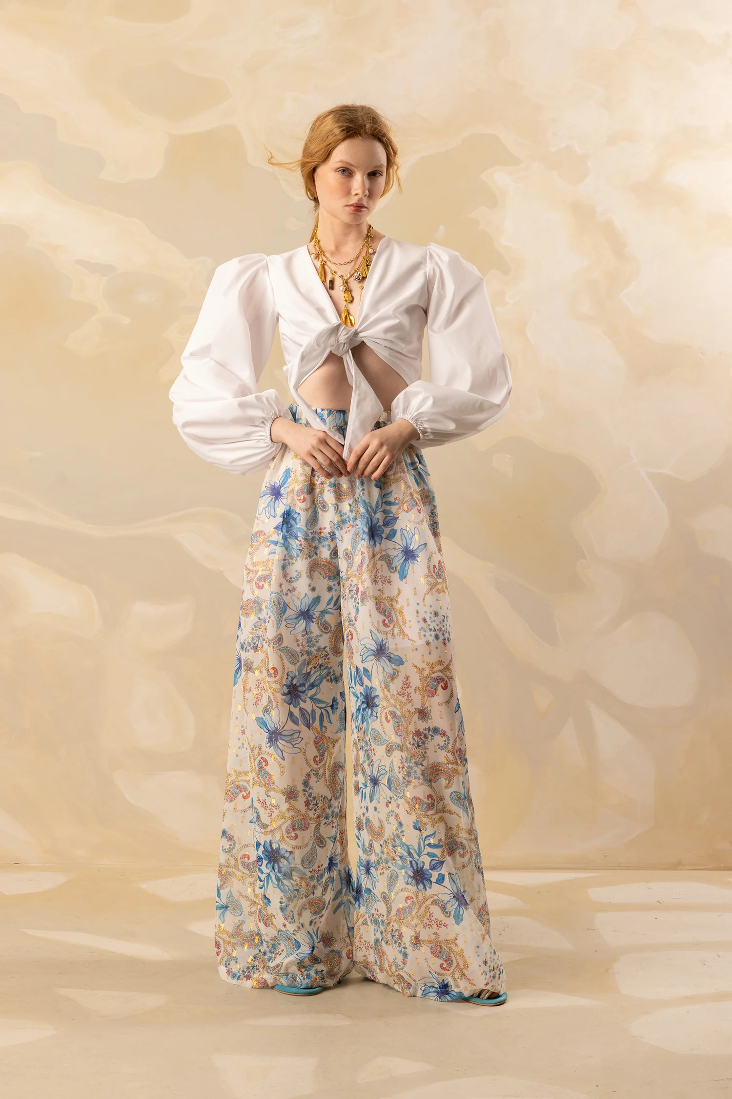 - Μπεζ βάση με μπλε & χρυσές λεπτομέρειες