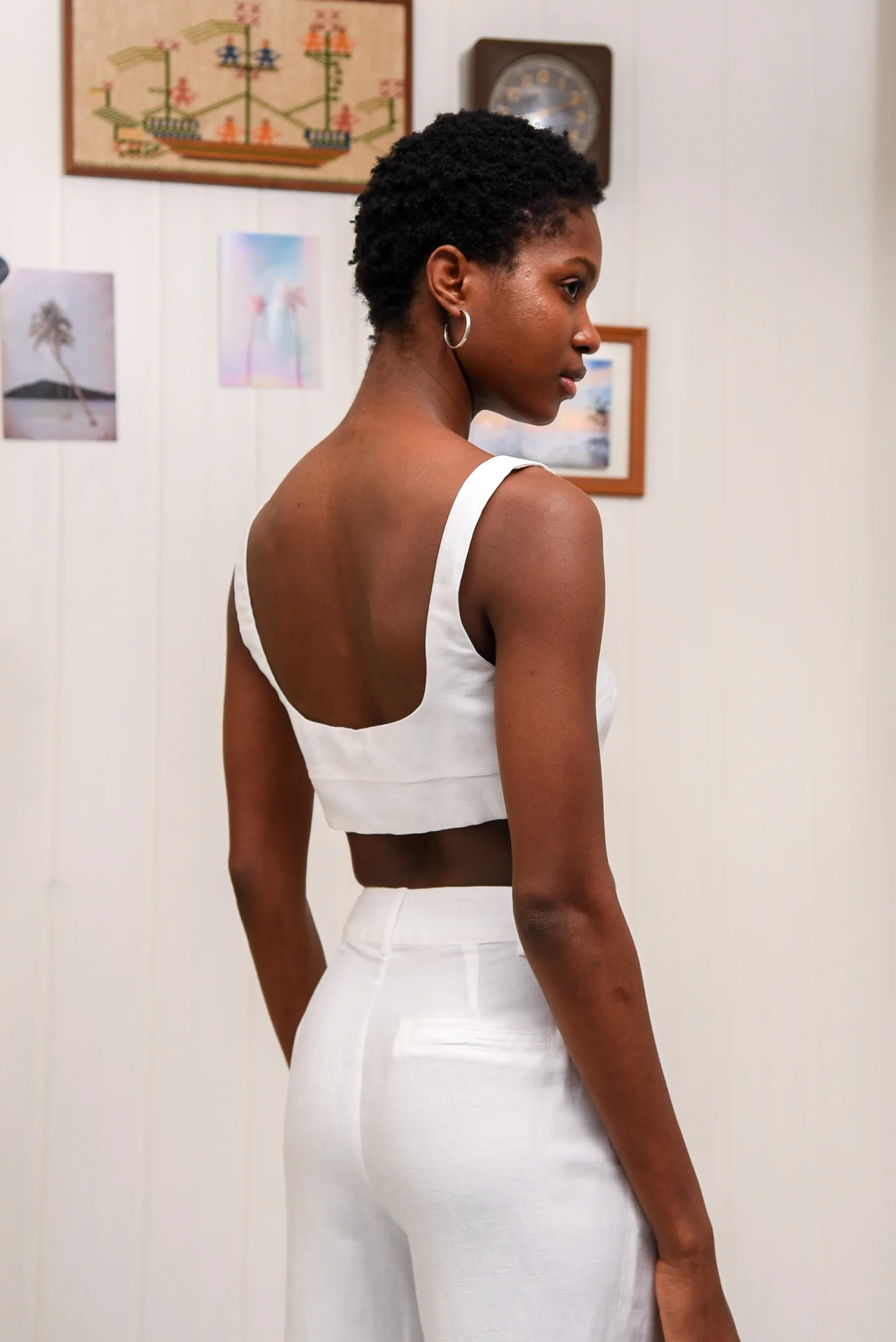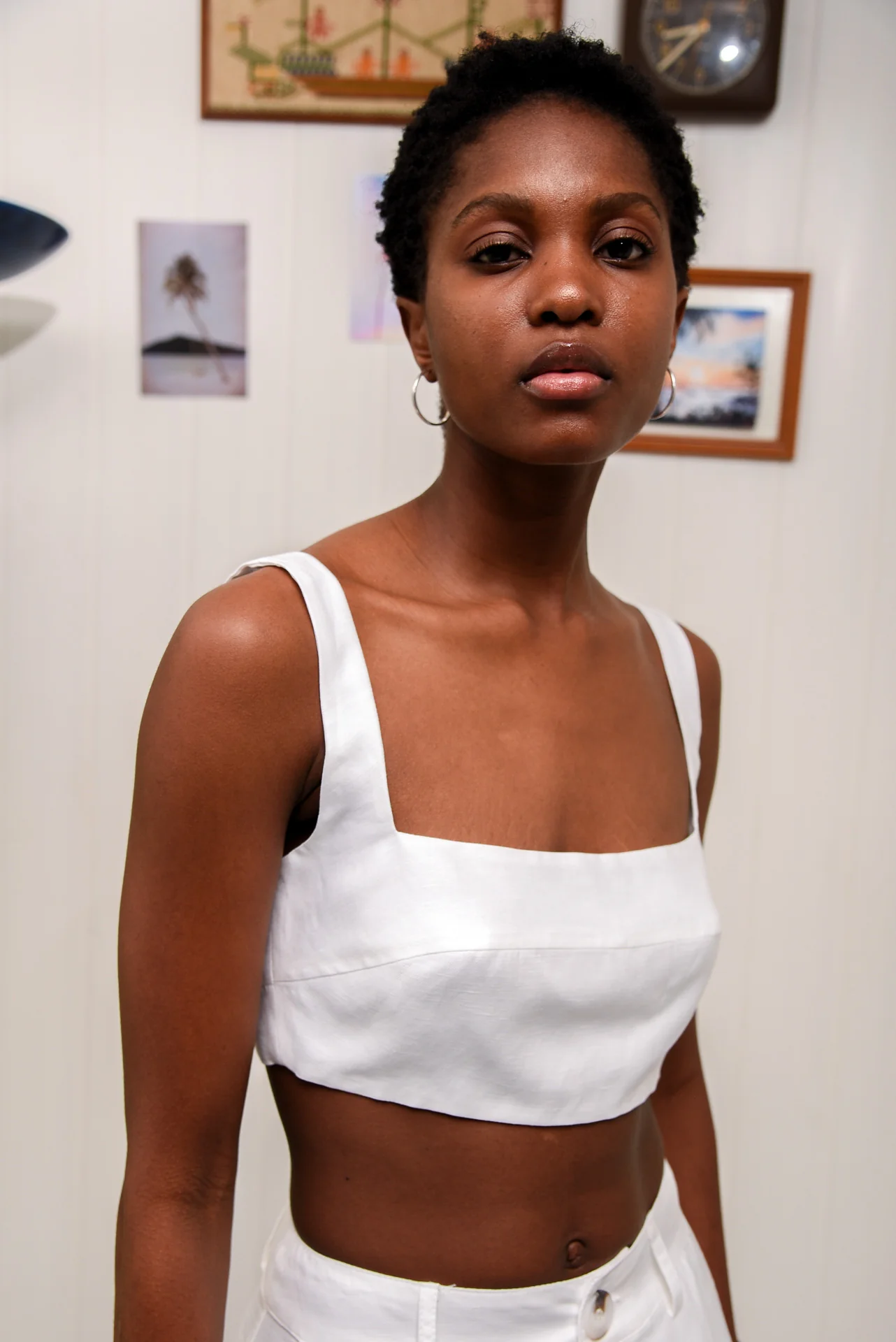 Coconut Milk Top in White – effortlessly chic and versatile. Made from a breathable linen blend, this cropped top features a square neckline, thick straps, and a structured fit. The minimalist design ensures easy pairing with skirts, pants, or shorts.