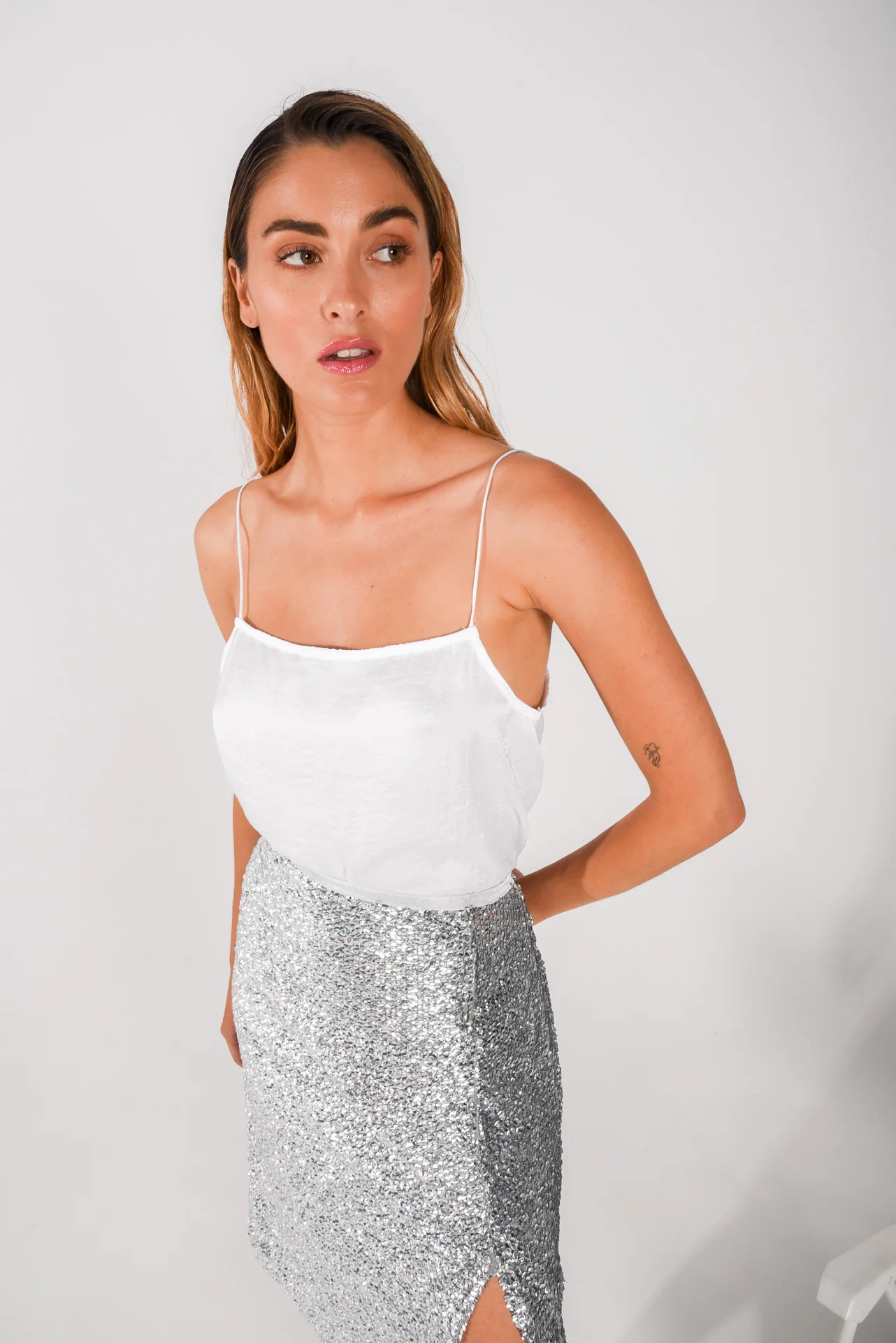PUSSYCAT DOLLS MIDI SKIRT SILVER