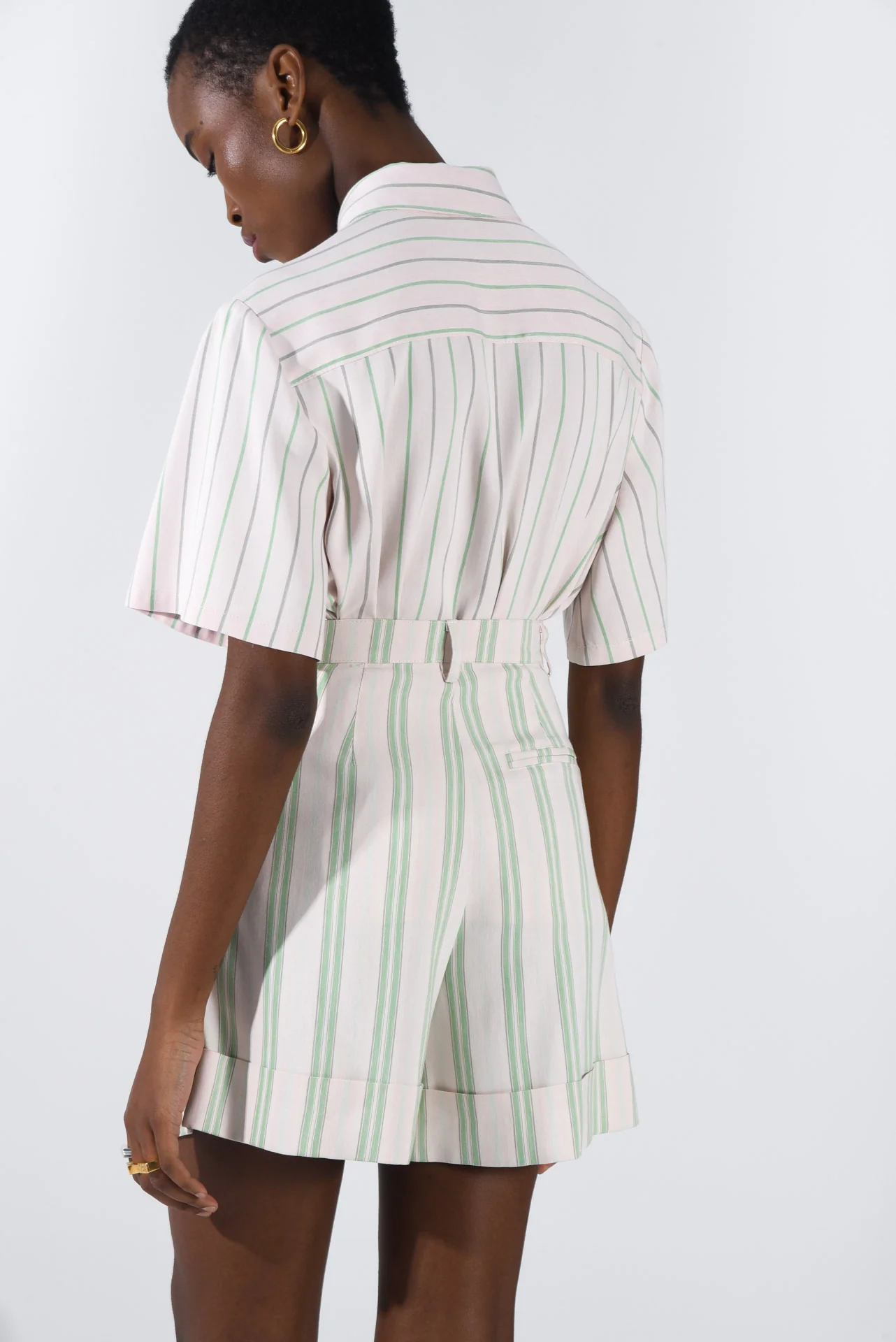 Introducing “Ross” shorts, a stylish addition to your wardrobe. These striped shorts feature a unique detail with pockets placed outside the garment, adding a touch of flair to your look. With a fixed waistline and a folded finish, they offer both comfort and style for any occasion.